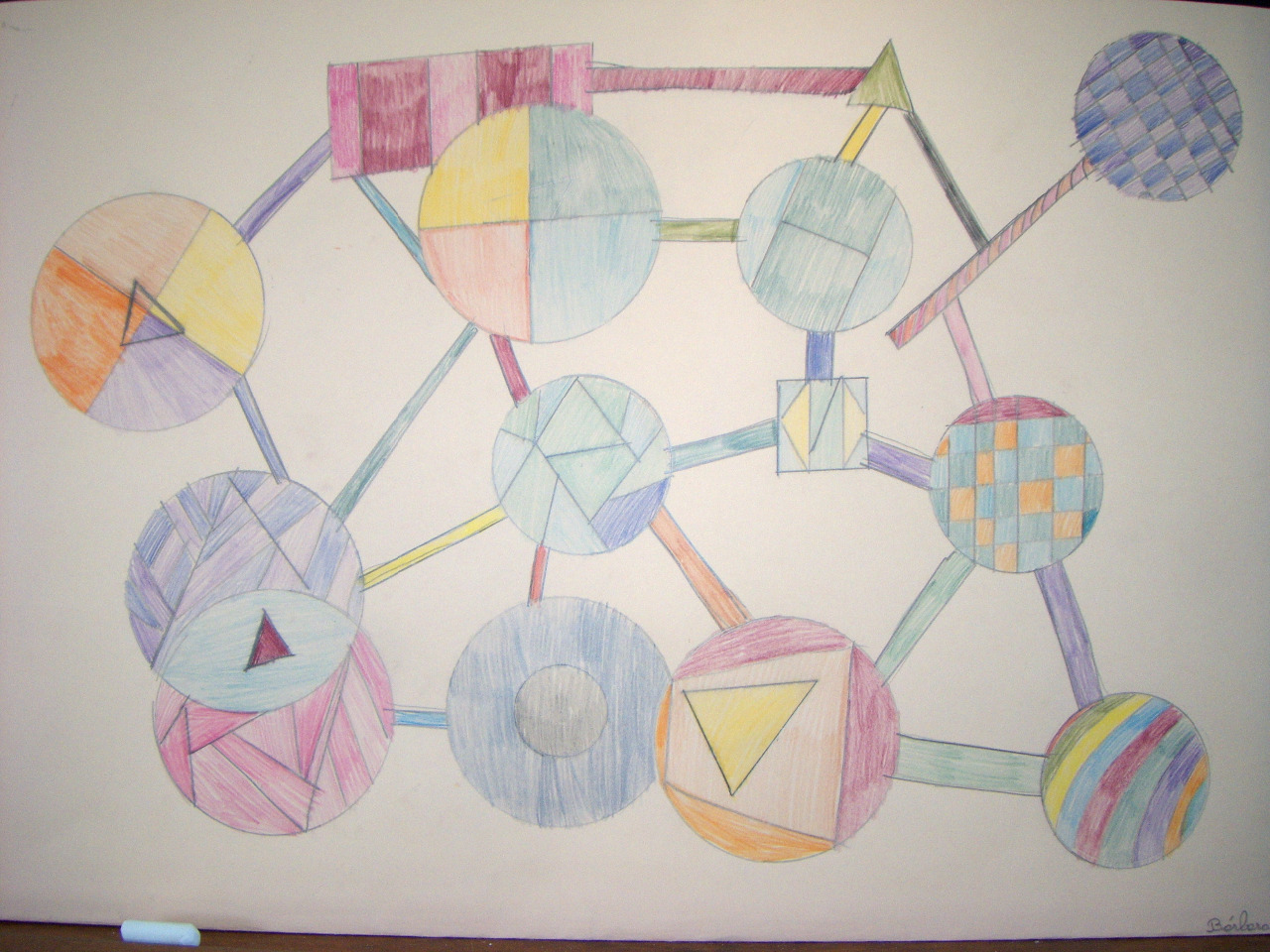 Estivemos a fazer uma capa para guardar os nossos trabalhos de expressão plástica e decorámo-la assim... Utilizámos compasso,régua e esquadro. Até foi bem divertido ver o que iamos conseguindo compor!